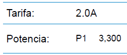 Lo primero que tienes que saber es que potencia y que tarifa tienes contratada, en este caso una tarifa 2.0A con 3.3 kw contratados.
